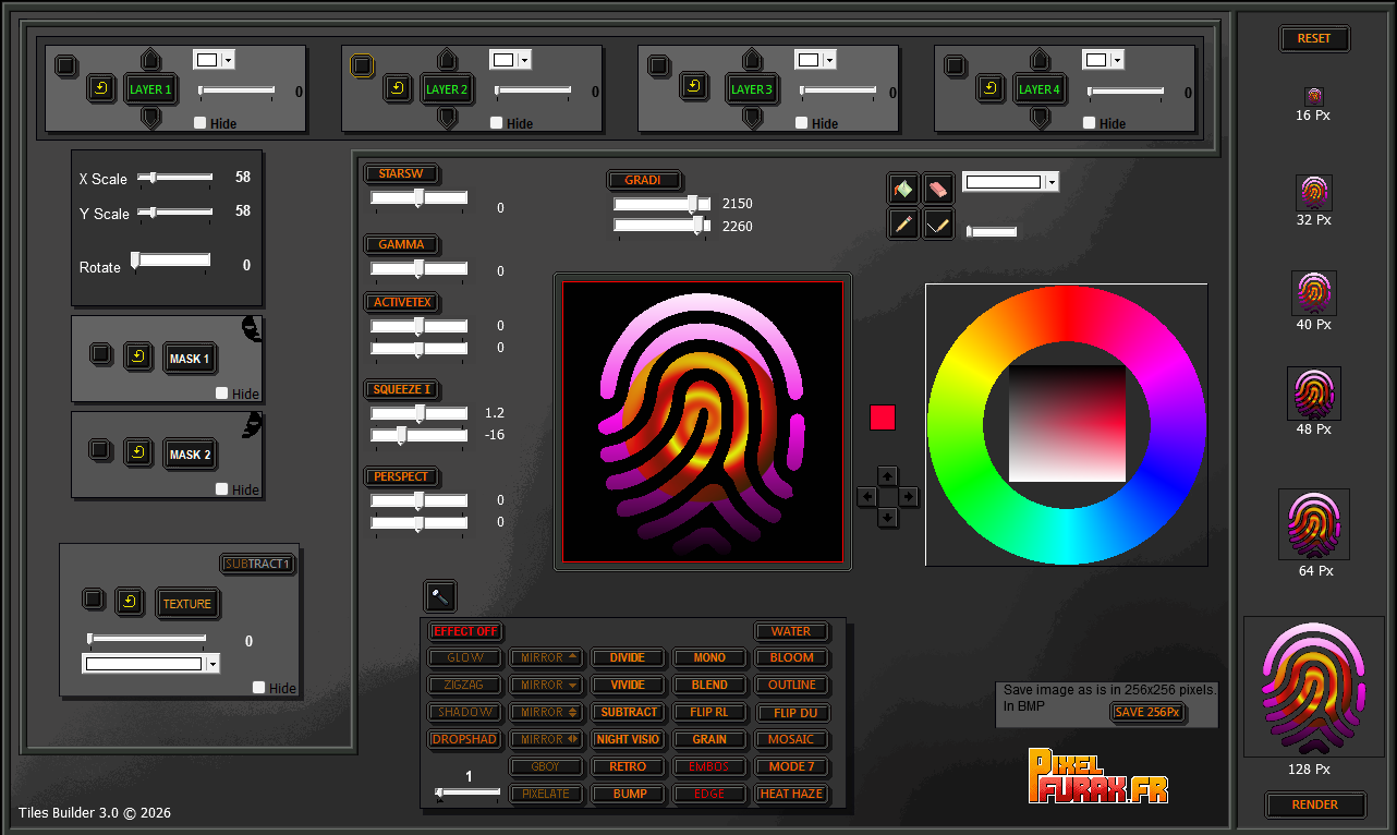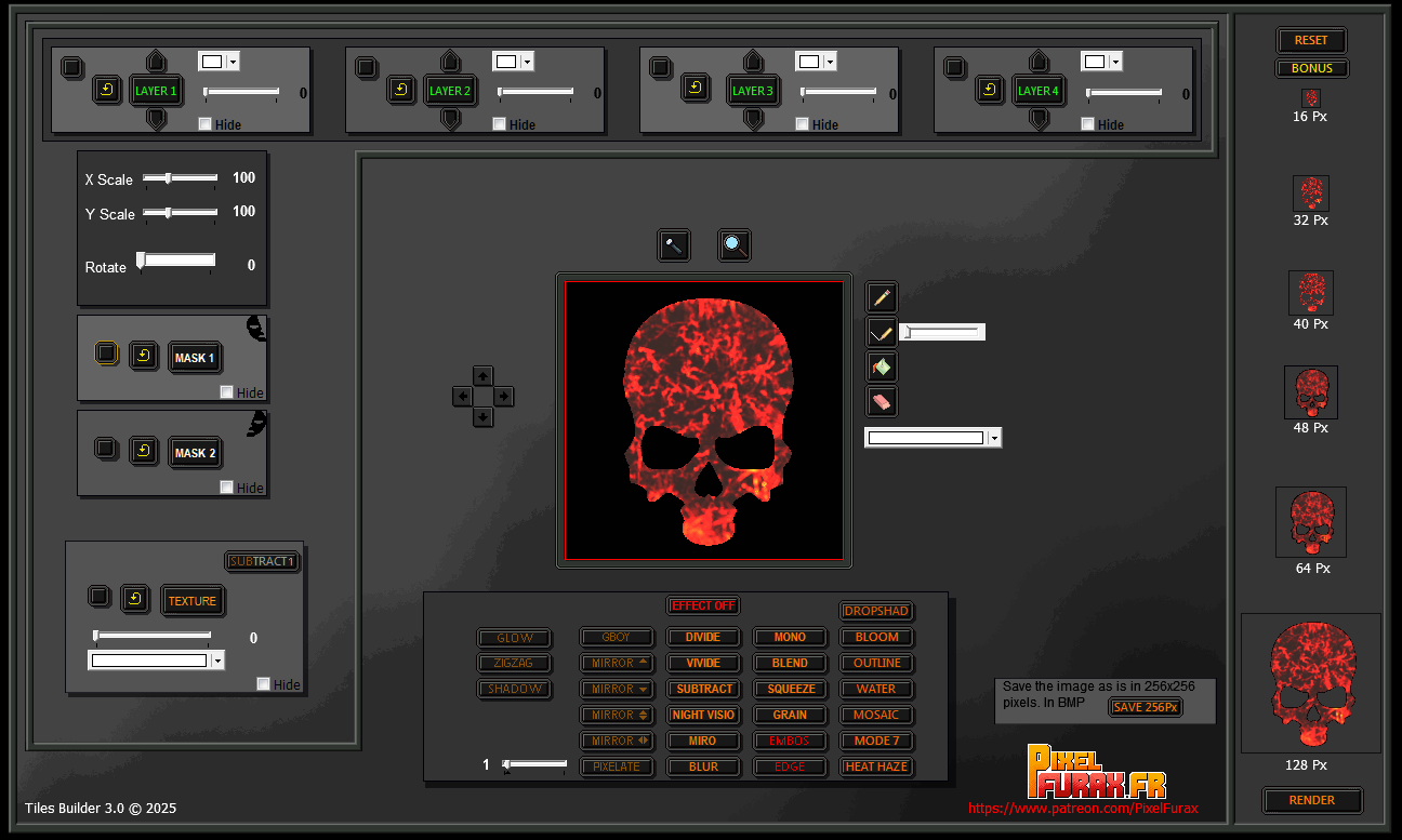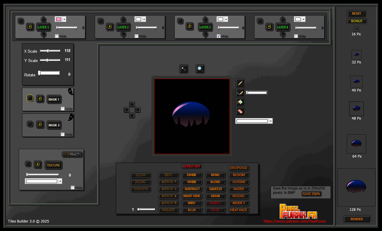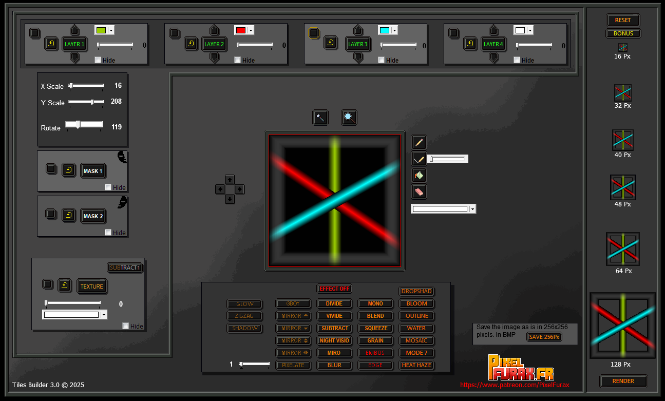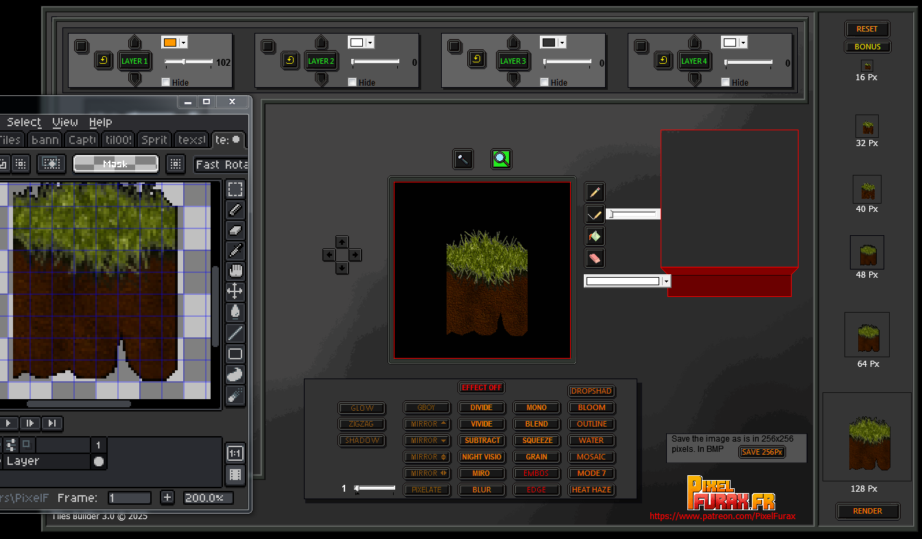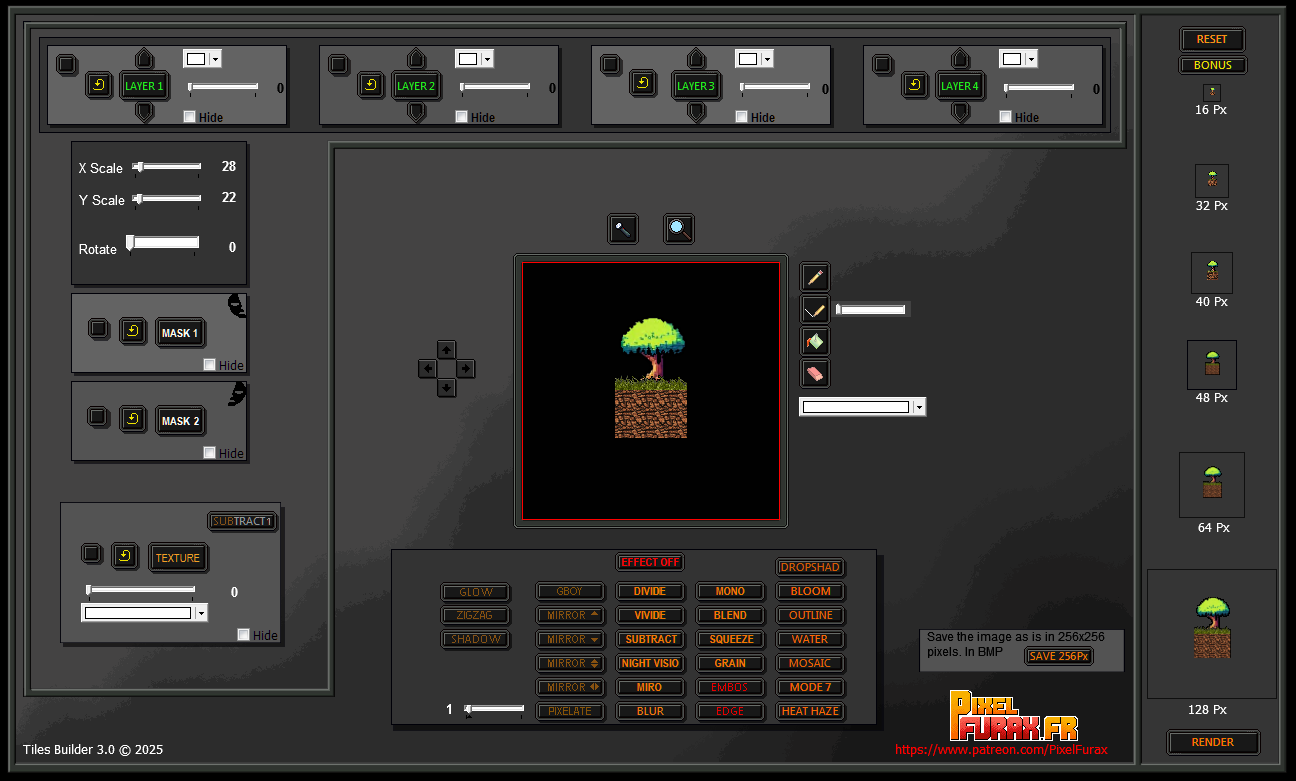 Tiles Builder 3 is software designed for game developers and creators who want to bring their visual worlds to life. Thanks to a layer system, masks, and numerous customizable effects, you can quickly generate new graphic elements from existing libraries or by integrating your own. The final result remains fully flexible and editable.